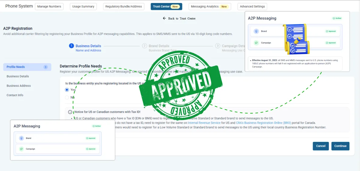 Ensure seamless messaging by registering and complying with A2P 10DLC regulations for better deliverability and trust.